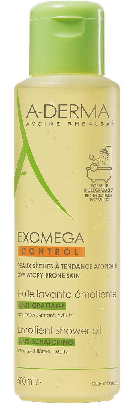 A-Derma Exomega Control Zvláčňujúci sprchový olej 500 ml Zvláčňujúci sprchový olej pomáha zmierniť pocity svrbenia a zároveň pokožku zvláčňuje. Jemne čistí, vyživuje a upokojuje suchú kožu so sklonom k atopii. Možno použiť v sprche alebo do kúpeľa. Neštípe v očiach a neobsahuje mydlo. Je vhodný pre dojčatá, deti i dospelých so suchou kožou so sklonom k atopii.