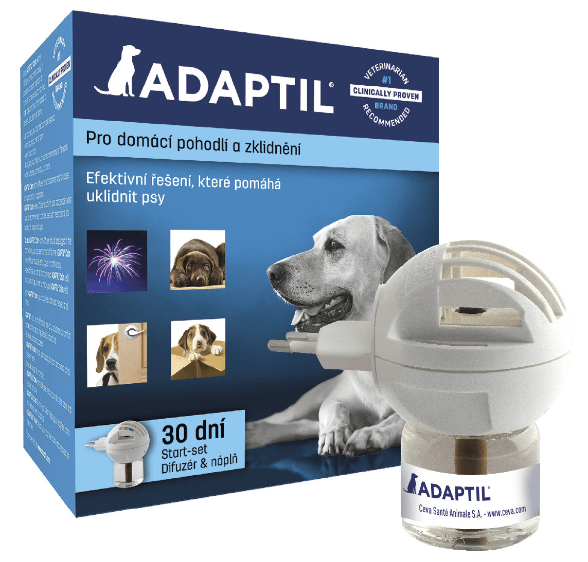 Adaptil Difuzér a náplň pre psy 48 ml Psie feromóny: Adaptil difuzér pomáha psom upokojiť sa a adaptovať na rôzne situácie, ako je sám doma, zvládnutie hlasných zvukov, návštev a strachu.