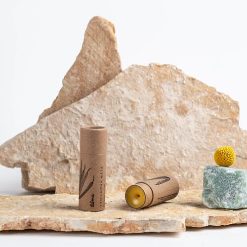 INCI: Mangifera Indica Seed Butter (Mangové maslo), Simmondsia Chinensis Seed Oil* (Jojobový olej), Cera Alba* (Včelí vosk), Vanilla Planifolia Fruit Extract* (extrakt Vanilky), Tocopherol (Vitamín E), Vanilla Plantifolia Fruit Extract Esenciálny olej Vanilka), Alcohol (obsiahnutý v EO vanilky), Aqua (obsiahnutá v EO vanilky), Mentha Viridis Leaf Oil (esenciálny olej Mäta klasnatá), Limonene**.