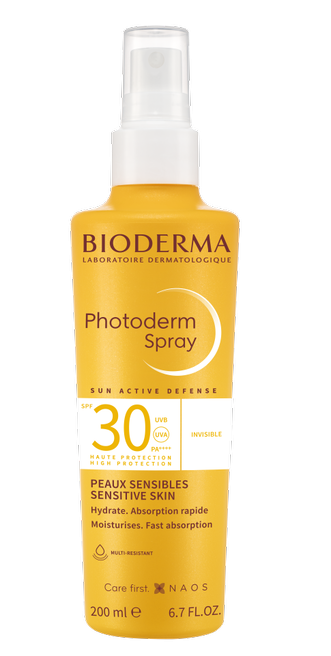 Sprej na opaľovanie Bioderma Photoderm s ochranným faktorom SPF 30 a ultra-ľahkou textúrou je určený i na tú najcitlivejšiu a intolerantnú pokožku. Vďaka najvyspelejšej ochrane SUN ACTIVE DEFENSE s posilneným účinkom proti UVA posilňuje prirodzenú obranyschopnosť pokožky proti slnku a zaručuje tak maximálnu ochranu. Je ľahko roztierateľný, nezanecháva biele stopy ani mastný film.