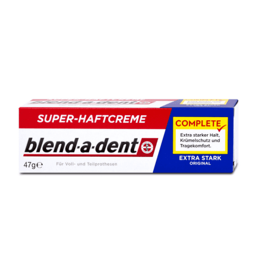 Prípravok na fixáciu zubných protéz. Fixačný krém Blend-a-dent zabezpečuje: extra silné držanie protézy ochranu sliznice pred mechanickým poškodením, komfort pri nosení.