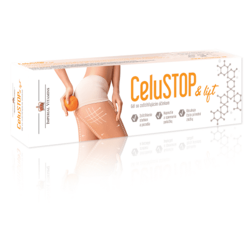 CeluSTOP & lift gél je Vašim spoľahlivým a vysoko účinným pomocníkom v boji proti celulitíde a ochabnutej pokožke. Špeciálne formulované zloženie nielenže napomáha odstráneniu pomarančovej pokožky z Vašich stehien, brucha a sedacích partií, ale tiež odbúrava tuky a pôsobí zoštíhľujúco. Účinné látky ako Arnica a Brečtan zlepšujú prekrvenie pokožky, čím spôsobujú jej napnutie, spevnenie a zvýšenie jej pružnosti. Zlepšené prekrvenie tiež napomáha vyplavovaniu toxínov z Vašej pokožky.