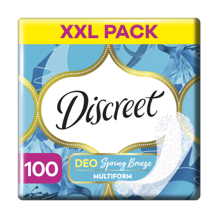 Intímky Discreet Multiform Spring Breeze vám poskytnú pocit sviežosti a zároveň vám pomôžu cítiť sa nádherne v akomkoľvek oblečení! Tieto intímky umožnia vašej pokožke prirodzene dýchať v oblasti intímnych partií a doprajú jej až 12 hodín sviežosti a pohodlia. Sú také tenké, že ich ani nebudete cítiť, a navyše sa vďaka tvaru Multiform hodia do akéhokoľvek typu nohavičiek. Tento variant prináša jedinečnú vôňu Spring Breeze pre pocit celodennej sviežosti. Nech už vám deň prinesie čokoľvek, tieto intímky vás nesklamú!