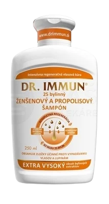 Dr. Immun Ženšenový šampón 250 ml Ženšenový šampón pre hustejšie a silnejšie vlasy proti vypadávaniu vlasov so silou 25 bylín.