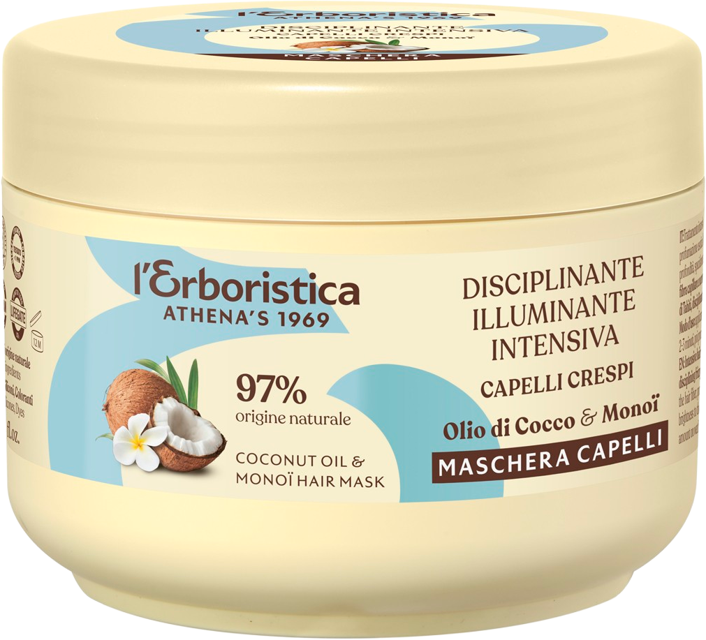 Erboristica Okamžitá maska na suché a poškodené vlasy s kokosovým olejom a monoi 200 ml Maska na vlasy zlepšuje rozčesateľnosť, vlasy sú jemnejšie a lesklejšie. Kokosový olej a extrakt z monoi prirodzene rekonštruujú hydrolipidickú štruktúru vlasového vlákna a chránia vlasy pred poškodením. Maska obnovuje hĺbkovú hydratáciu vlasov.