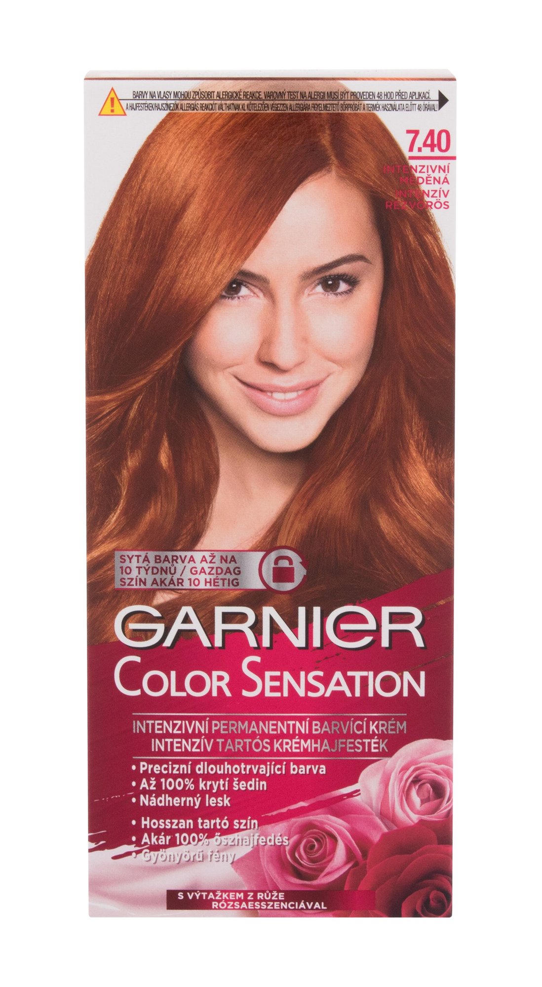 Garnier Šetrná farba Color Sensation 7.40 Intenzívna medená 110 ml Garnier Color Sensation prináša farby na vlasy s doposiaľ najvyšším obsahom účinných pigmentov. Ponúka intenzívne a dokonalé krytie s výnimočne výrazným farebným výsledkom, 100% krytie šedín a dlhotrvajúci účinok. Farebný odtieň zostáva živý a žiarivý.