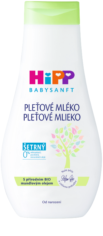 HiPP BabySANFT Detské pleťové mlieko s Bio mandľovým olejom, 350 ml HiPP Pleťové mlieko s cennými prírodnými zložkami z BIO mandlí a bambuckým maslom pokožku zvlhčuje a udržuje jej prirodzené pH.