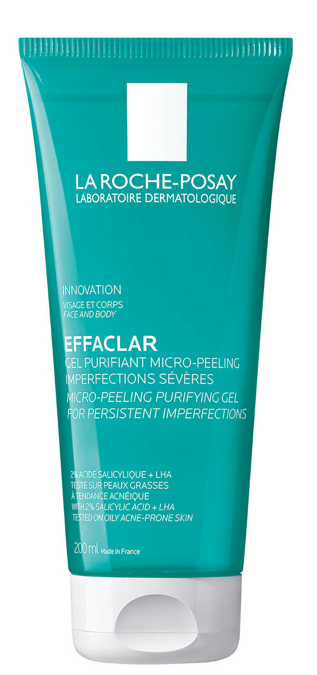 La Roche-Posay Effaclar Mikropeelingový gél 200 ml Čistiaci mikropeelingový gél určený pre pokožku so sklonom k akné aj na tele s obsahom LHA, kyseliny salicylovej a zinku.