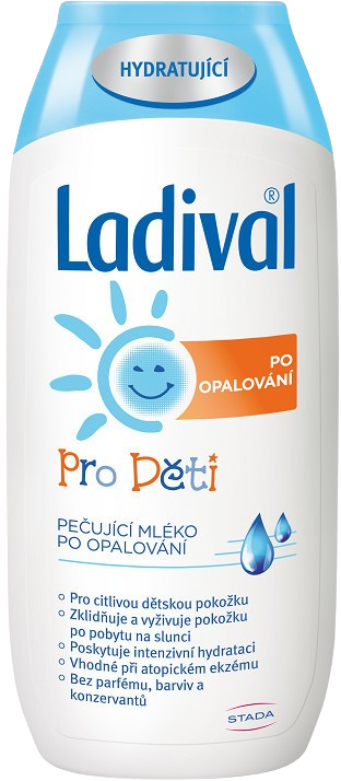 Ladival Mlieko po opaľovaní pre deti 200 ml Ladival Deti po opaľovaní starajúce sa mlieko po opaľovaní je vhodné pre citlivú detskú pokožku. Upokojuje a vyživuje pokožku po pobyte na slnku a poskytuje intenzívnu hydratáciu. Mlieko po opaľovaní je vhodné aj pri atopickom ekzéme. Neobsahuje parfém, farbivá ani konzervanty.