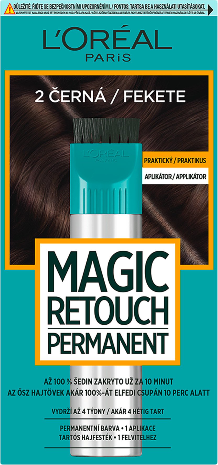L'Oréal Paris Magic Retouch Permanent 2 Čierna, 27+18 ml L'Oréal Paris Magic Retouch Permanent je jednoduché a rýchle riešenie pre odrasty, ktoré zakryje až 100% vašich šedín.