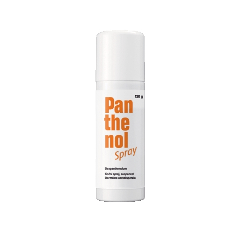 Indikácie: Panthenol spray slúži na podporu hojenia kože a slizničných lézií (poranenia kože ako sú napríklad odreniny, popáleniny, obareniny, aseptické operačné rany, trhlinky na koži u neelastickej pokožky, pľuzgierovité zápaly kože, ošetrenie pokožky po spálení slnkom a opary vyvolané slnečným žiarením).Panthenol Spray sa môže aplikovať dospelým, mladistvým a deťom všetkých vekových skupín.