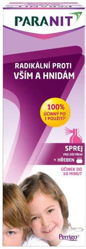 Paranit Radikálny proti všiam a hnidám, hrebeň + sprej 100 ml Paranit Radikálny sprej pre ošetrenie má preukázaný 100 % účinok proti všiam a hnidám v priebehu 10 minút.