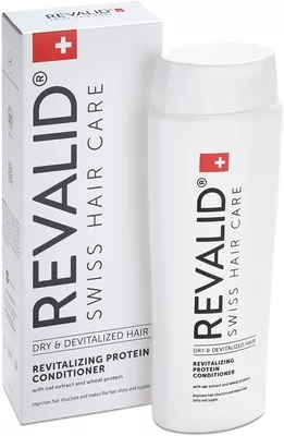 Revalid® revitalizujúci proteínový kondicionér obsahuje výživné zložky: výťažok z ovsa, pšeničná bielkovina a pantenol (vitamín B5), ktoré zlepšujú štruktúru vlasov, robia