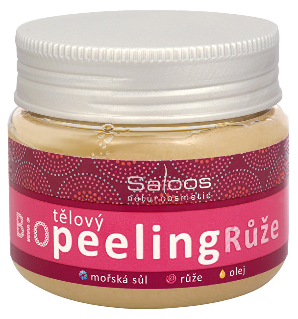Saloos Bio Telový peeling – Ruža 140 ml Luxusná zmes zmyselnej damaškovej ruže, morskej soli a rastlinných bio olejov na zjemnenie a zvláčnenie pokožky tela a zhrubnutých partií na lakťoch, kolenách a pätách. Pokožku hydratuje a pomáha tak v boji proti celulitíde. Navodzuje pocit čistoty a hebkosti.