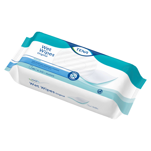 Tena Wet Wipe Original vlhčené utierky 80 ks Jemné a pevné vlhčené utierky TENA sú určené na každodennú hygienu celého tela.