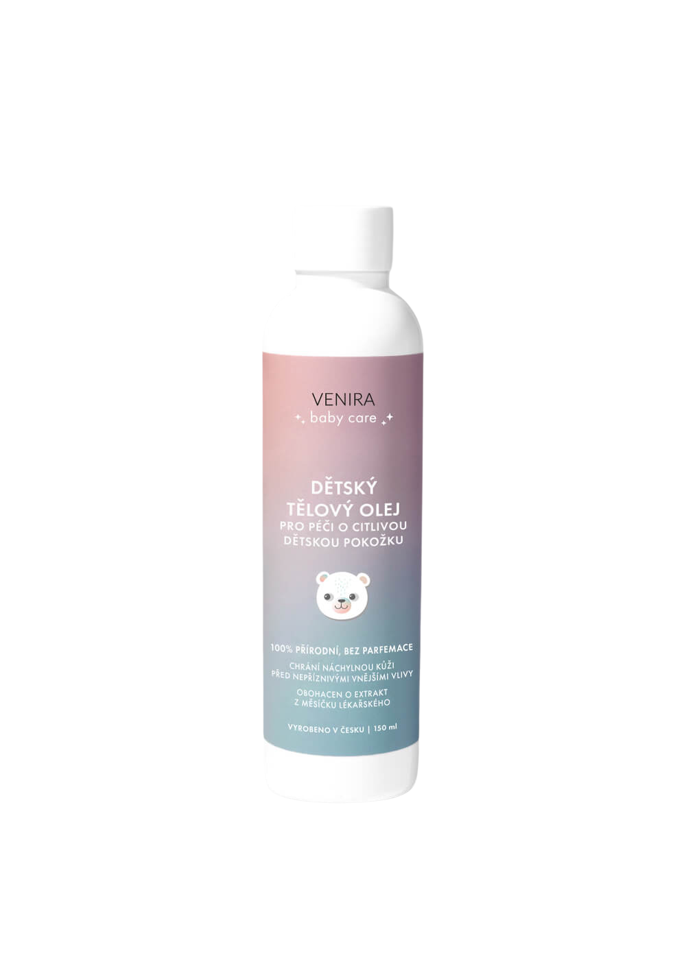 Venira detský telový olej 150 ml Doprajte svojim najmenším to najlepšie s telovým olejom špeciálne vyvinutým pre jemnú detskú pokožku.
