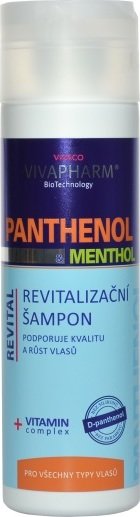 VivaPharm Revitalizačný šampón s panthenolom a mentolom 200 ml Intenzívny šampón s komplexom vitamínov priaznivo podporuje kvalitu a rast vlasov. Vhodný pre všetky typy vlasov.