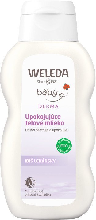 Weleda BABY Upokojujúce telové mlieko pre veľmi citlivú pokožku 200 ml Telové mlieko so starostlivo vybranými prírodnými surovinami pre upokojenie pokožky. Zmierňuje svrbenie veľmi citlivej pokožky so sklonom k atopii.