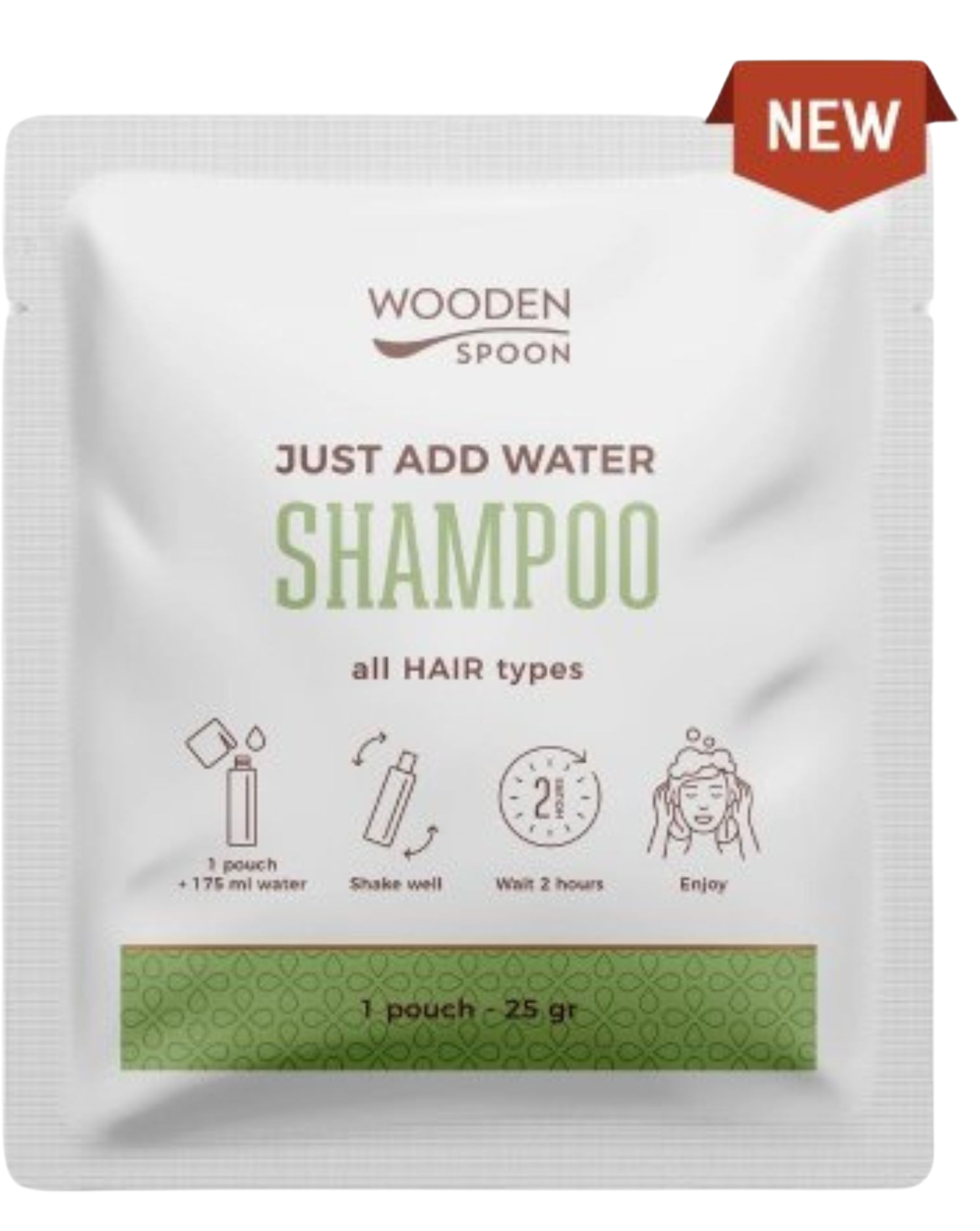 Woodenspoon Eko šampón na vlasy "Just add water!" 25 g Vyskúšajte ekologickú novinku – šampón, ktorý rozpustíte vo vlažnej vode. Vhodný pre všetky typy vlasov. Pri výrobe sa používa až o 96 % menej plastov. Šampón udržuje vlasy lesklé a hodvábne hladké a zároveň zlepšuje rozčesávanie a uľahčuje úpravu vlasov.