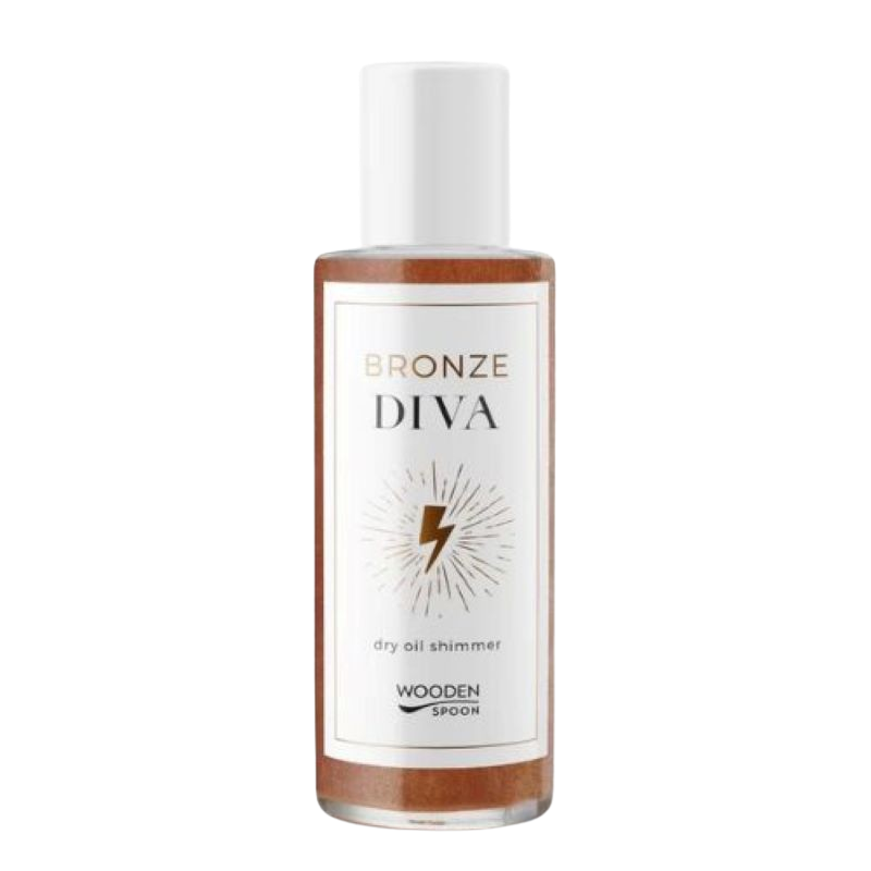 Woodenspoon Trblietavý suchý olej Bronze diva 100 ml Chcete byť pripravení na horúce letné dni? Trblietavý suchý olej zanechá vašu pleť hydratovanú, pružnú a žiarivú, bez mastných zvyškov. Drobné trblietky dodajú pokožke nádherný lesk.